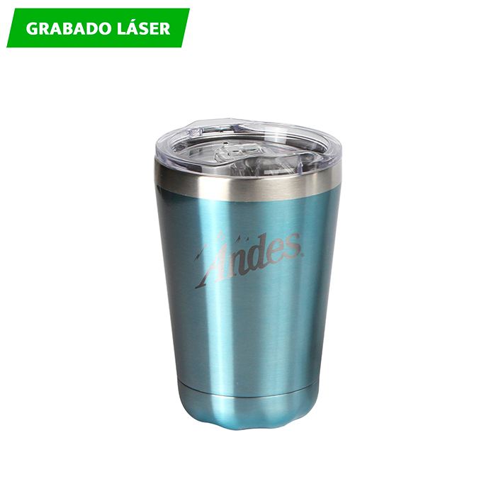 Vaso Paine. - Vaso de acero inoxidable doble pared con tapa transparente de plástico deslizable, fabricado en materiales de grado alimenticio, mantiene bebidas frías o calientes por un largo tiempo, no usar en microondas, capacidad de 266 ml (9 oz). Incluye caja de cartón individual.
