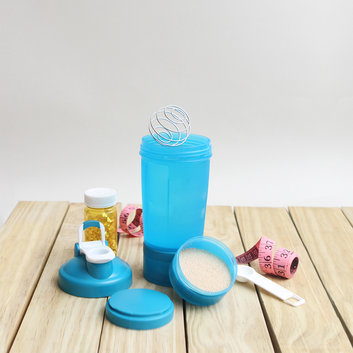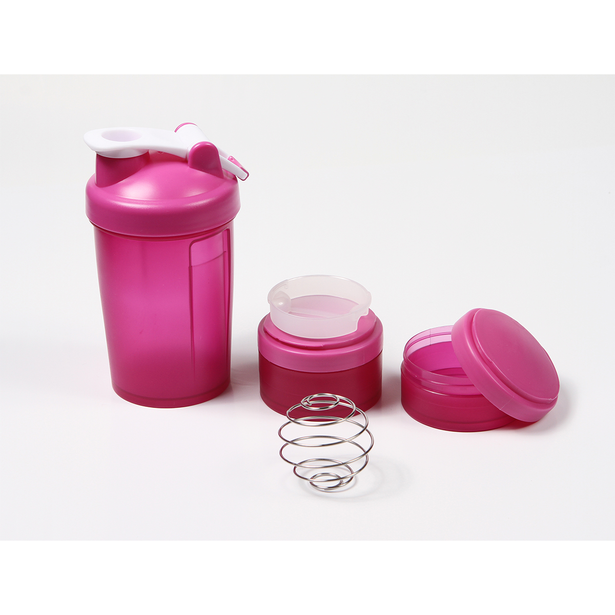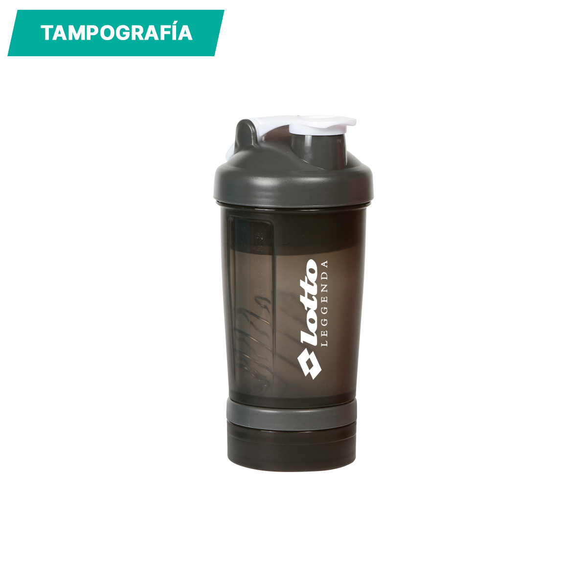 Botella mezcladora Nerja. - Botella mezcladora fabricada en polipropileno con agitador de acero inoxidable, 2 compartimentos desprendibles, tapa de seguridad, medidor de contenido en onzas y mililitros, capacidad de 560 ml (18 oz).