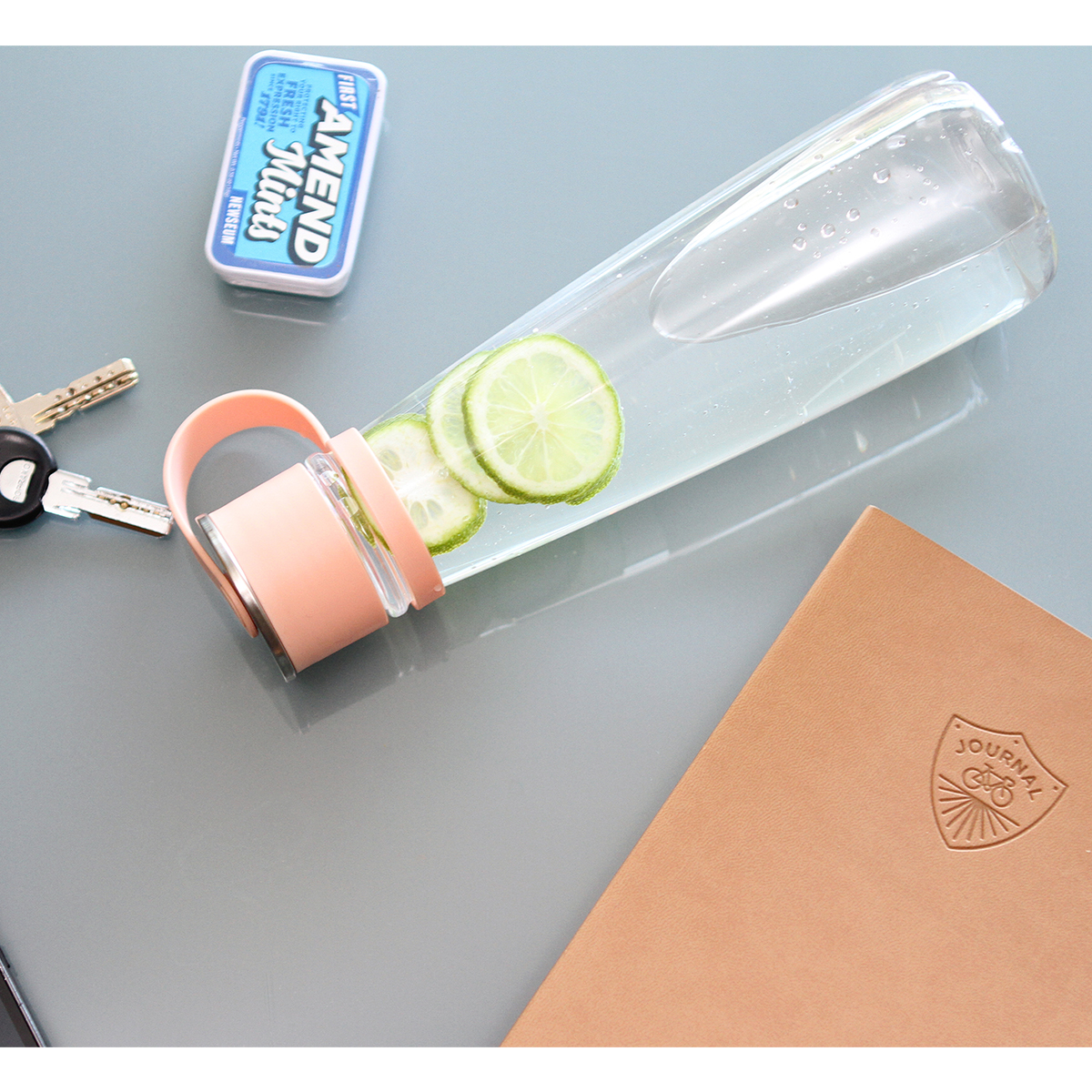Cilindro Olite. - Cilindro de policarbonato con tapa en polipropileno y detalle en metal, fabricado con materiales de grado alimenticio, no usar en microondas, capacidad de 580 ml (19 oz).