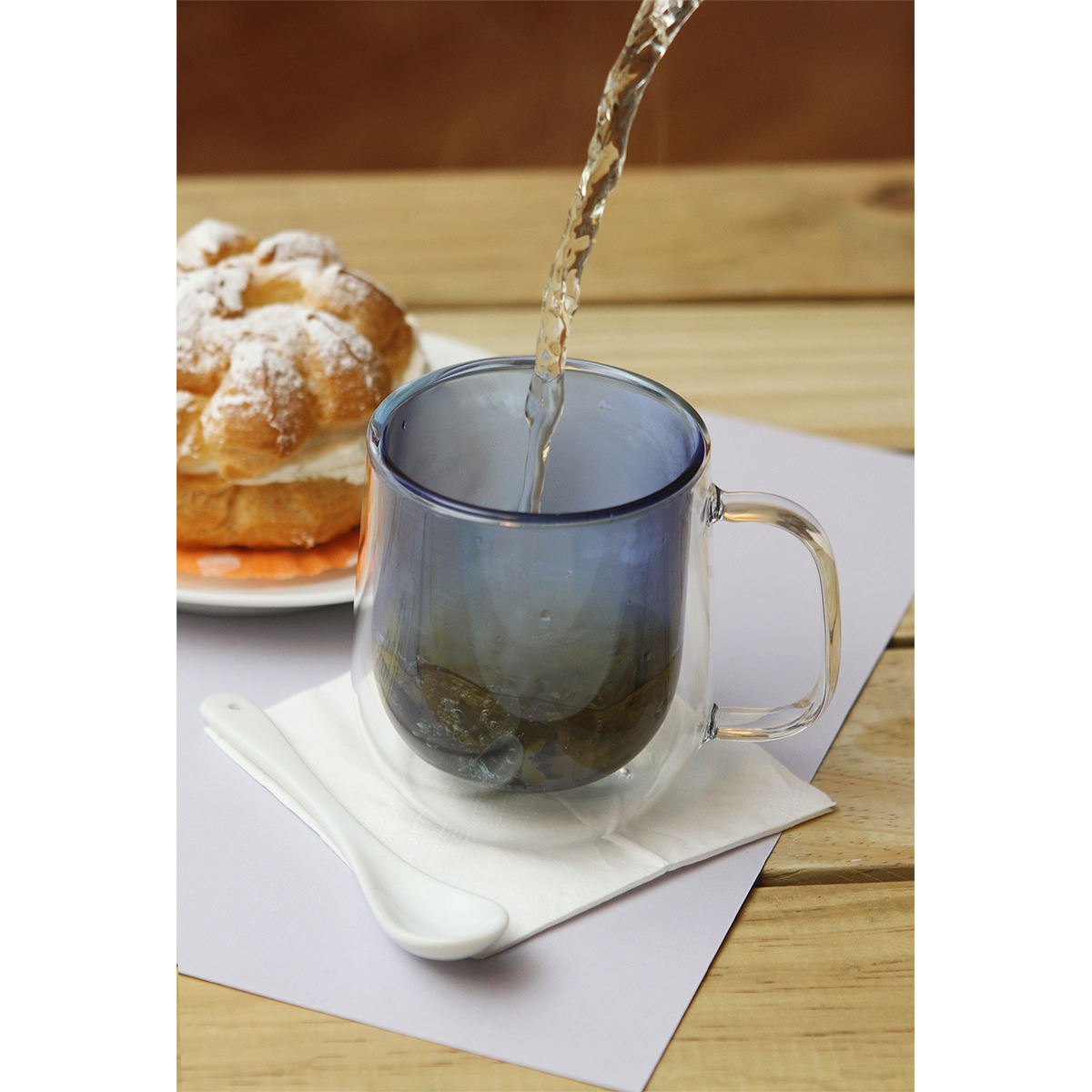 Taza Tuasivi. - Taza doble pared fabricada en vidrio de borosilicato, con detalle de color en la pared interna, fabricada en materiales de grado alimenticio, apta para microondas. Capacidad de 250 ml. Incluye caja de cartón individual.