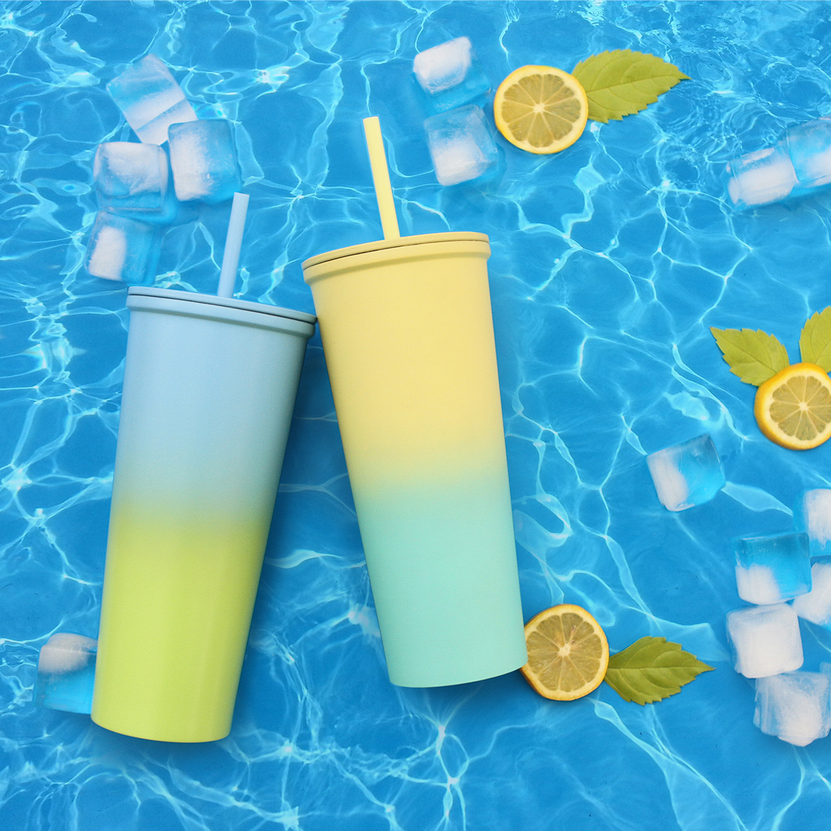 Vaso Vaitogi. - Vaso bi-tono doble pared de acero inoxidable, con popote de plástico. Fabricado en materiales de grado alimenticio, mantiene bebidas calientes por un largo tiempo, no usar en microondas. Capacidad de 690 ml. Incluye caja de cartón individual.