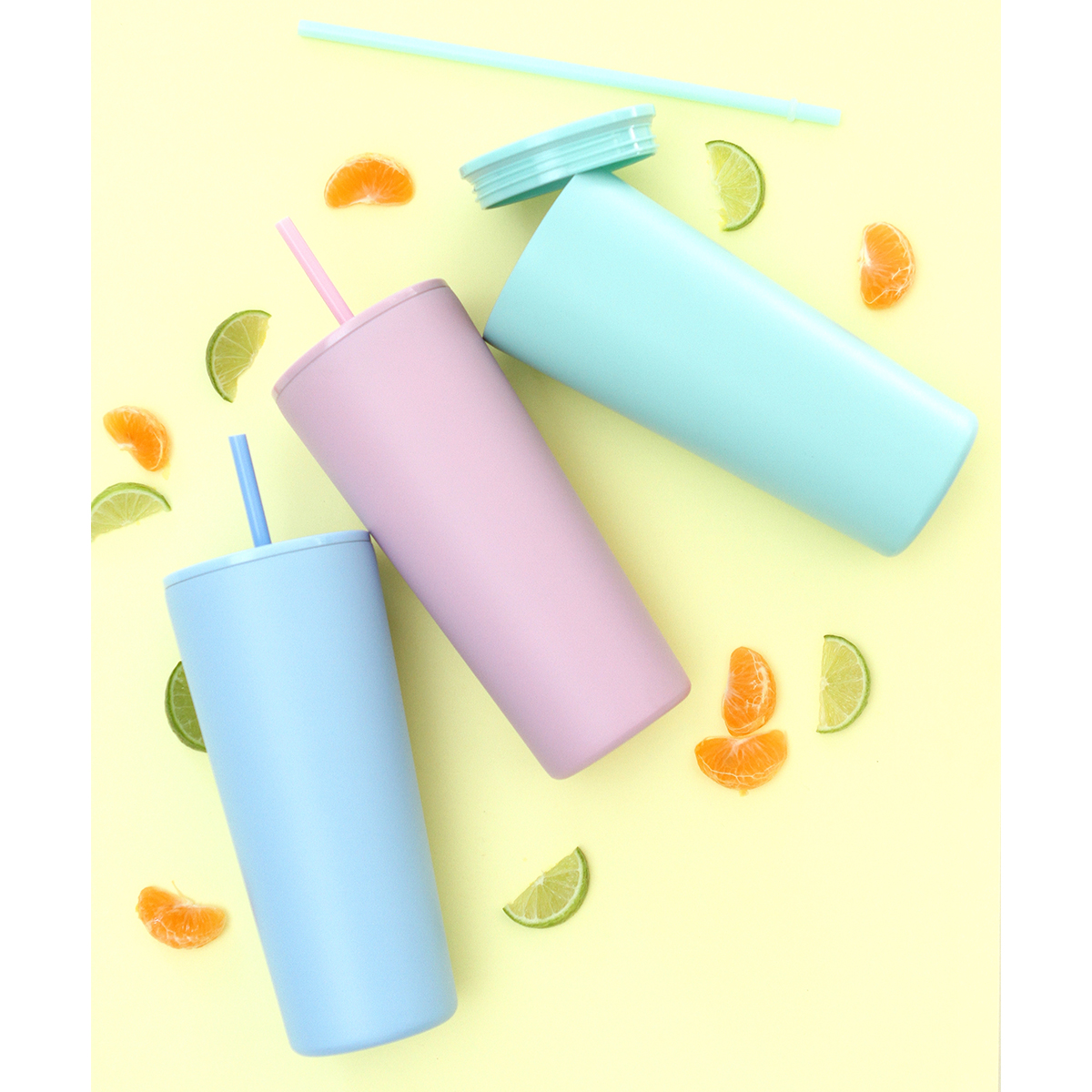Vaso Colelli. - Vaso de acero inoxidable doble pared con tapa de plástico tipo rosca, con popote. Fabricado en materiales de grado alimenticio, mantiene bebidas frías o calientes por un largo tiempo. No usar en microondas. Capacidad 660 ml. Incluye caja de cartón individual.