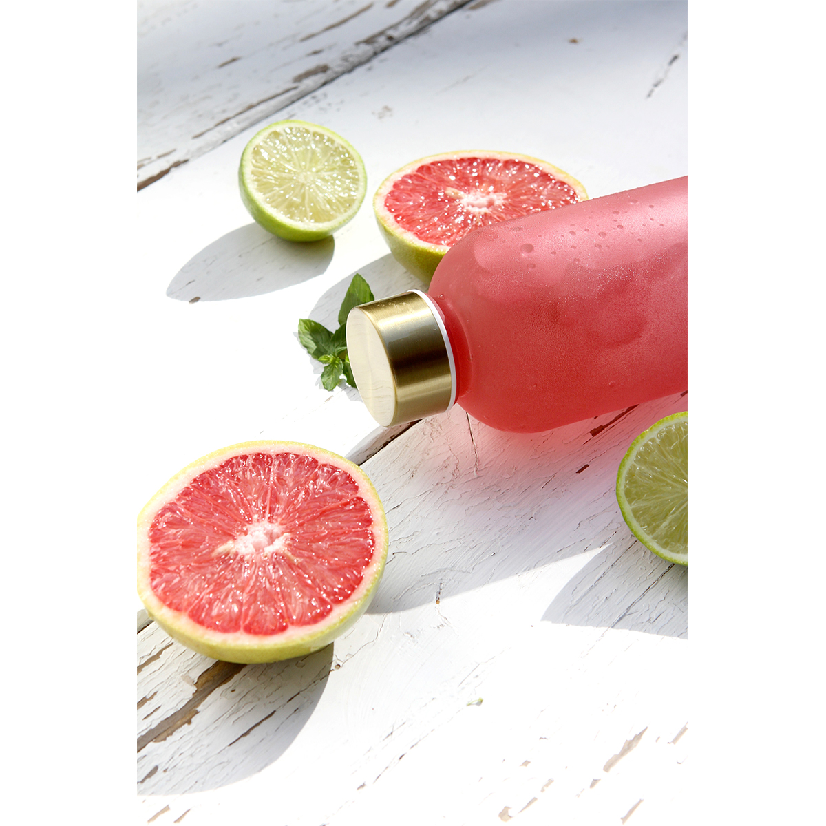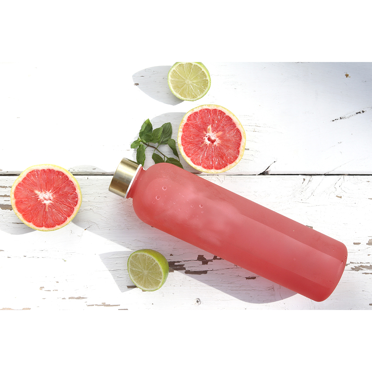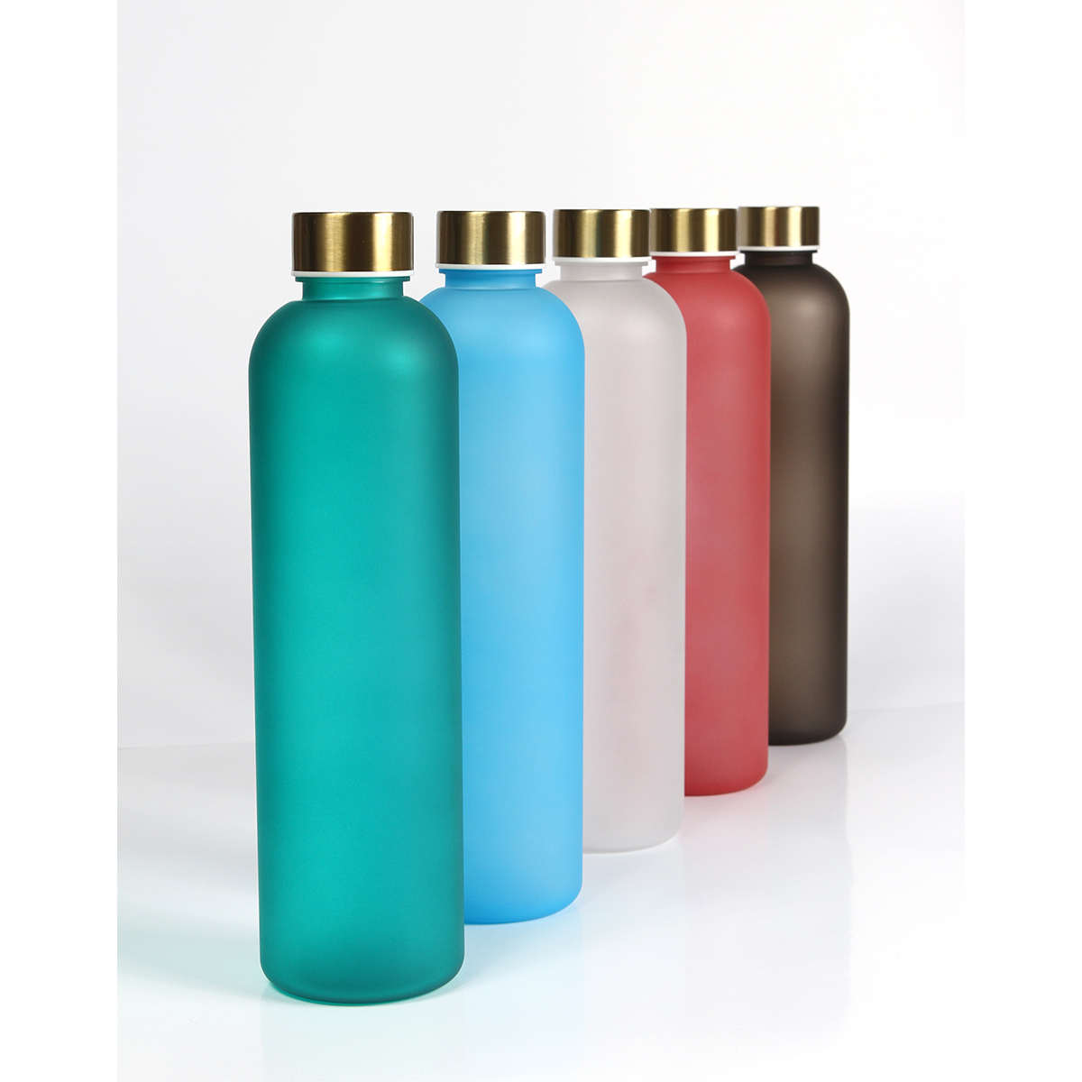 Botella Spiaggia. - Botella de plástico mate fabricada con materiales de alta calidad libres de contaminante BPA, con tapa dorada, capacidad de 1 litro, terminado mate. Incluye caja individual