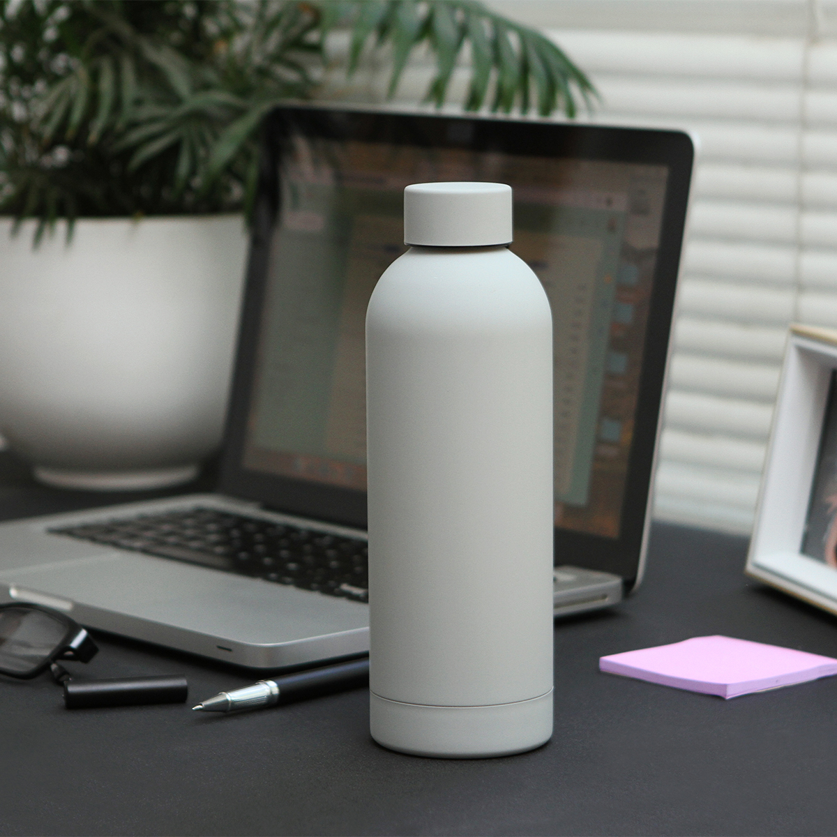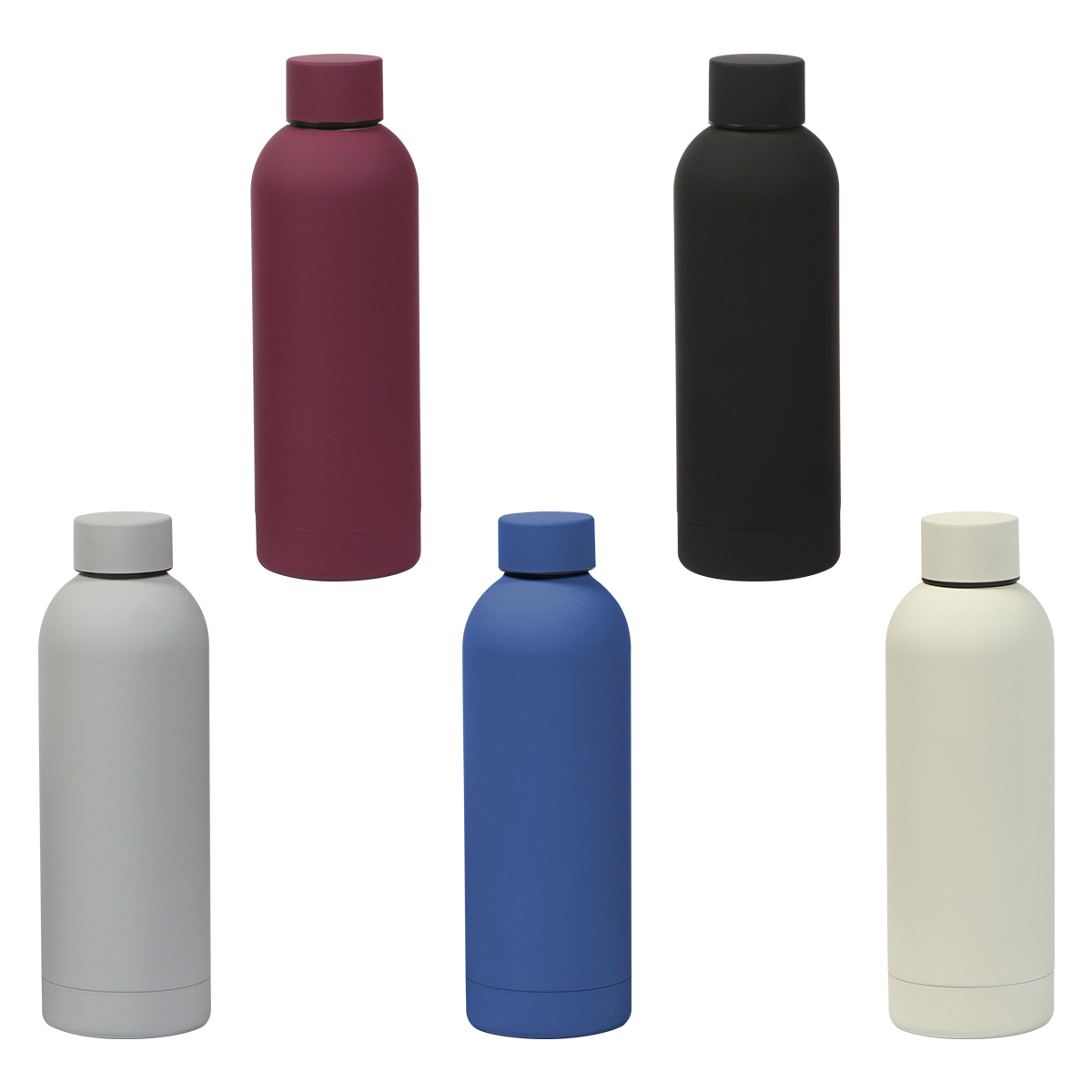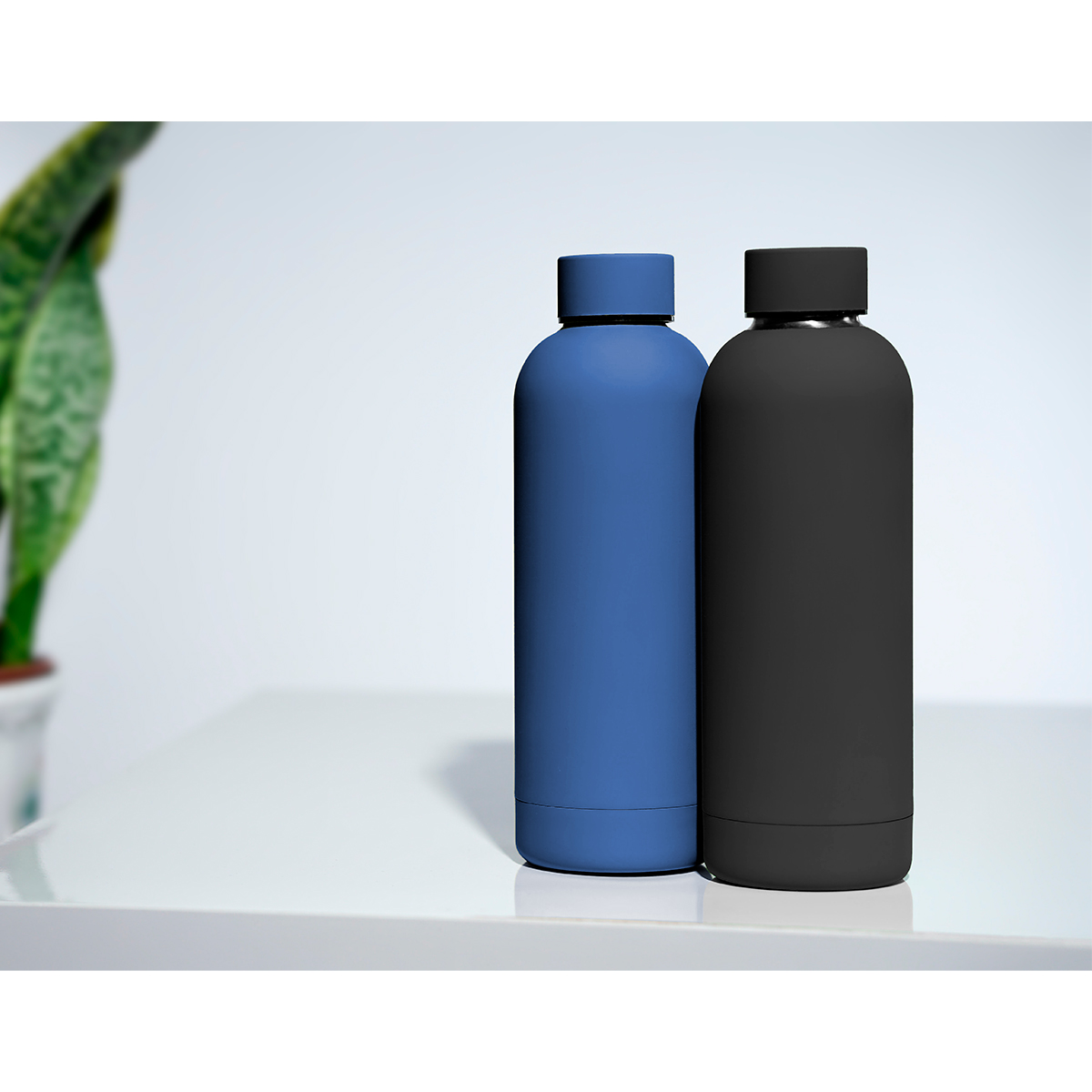 Botella Leonforte. - Botella de acero inoxidable doble pared con tapa de rosca y acabado tipo rubber. Su acabado proporciona un agarre cómodo y seguro.  Capacidad de 500 ml, no usar en microondas, incluye caja individual.