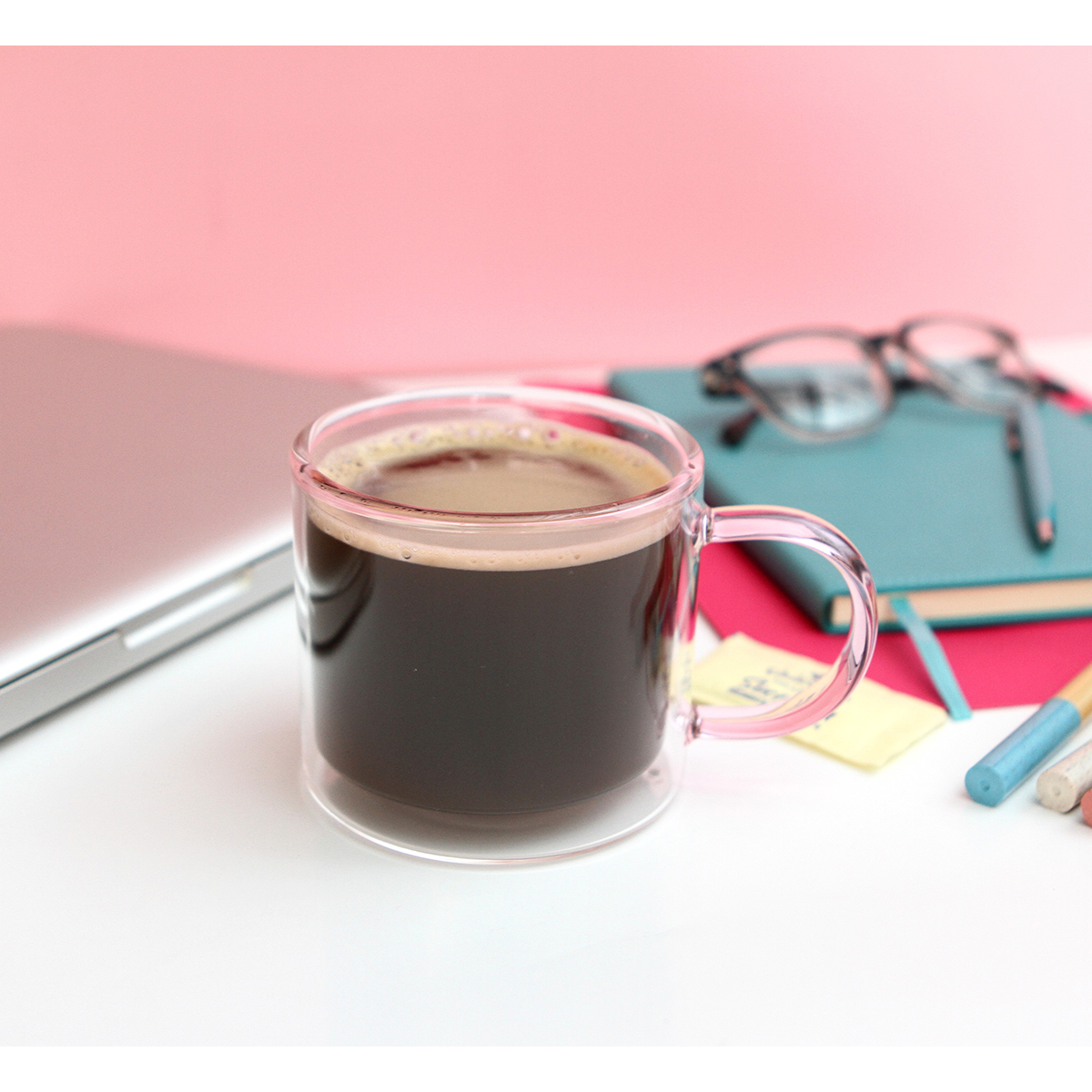 Taza Bight. - Taza de doble pared en color translúcido, fabricada en resistente borosilicato (vidrio), tiene una capacidad de 260 ml. Perfecta para disfrutar tus bebidas favoritas con un toque de elegancia y modernidad.