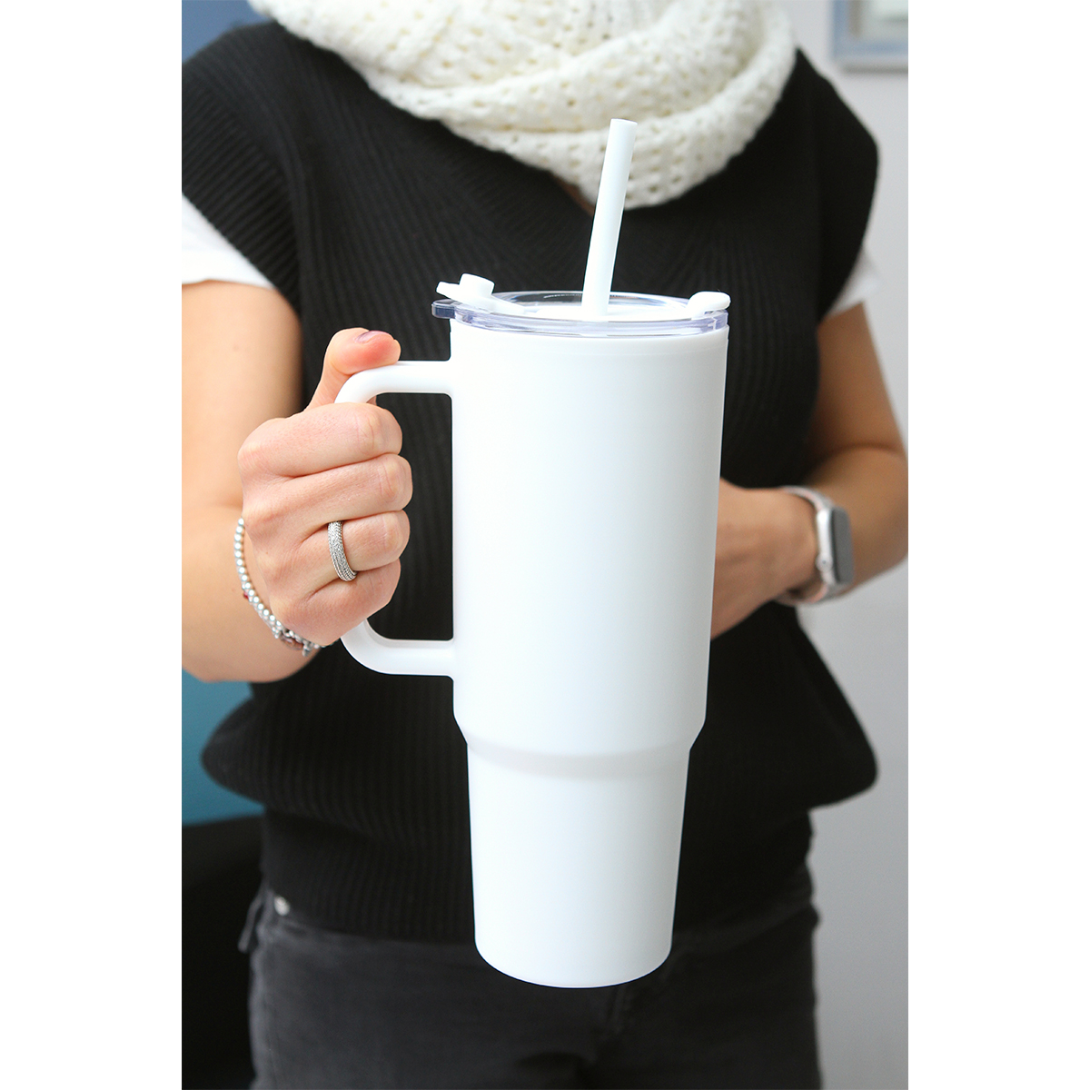 LATA TERMICA PREMIUM 17OZ BLANCO Cilindro de acero con popote en tapa, listo par...