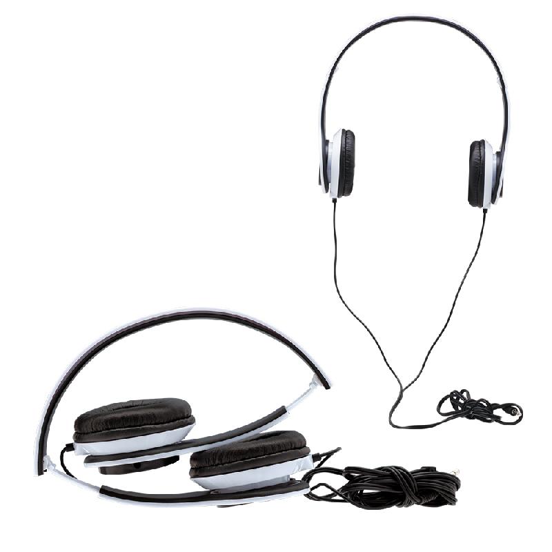 Audífonos de diadema. Medidas: 15.8 x18 cm Material: Plastico. Empaque: Caja blanca de cartón