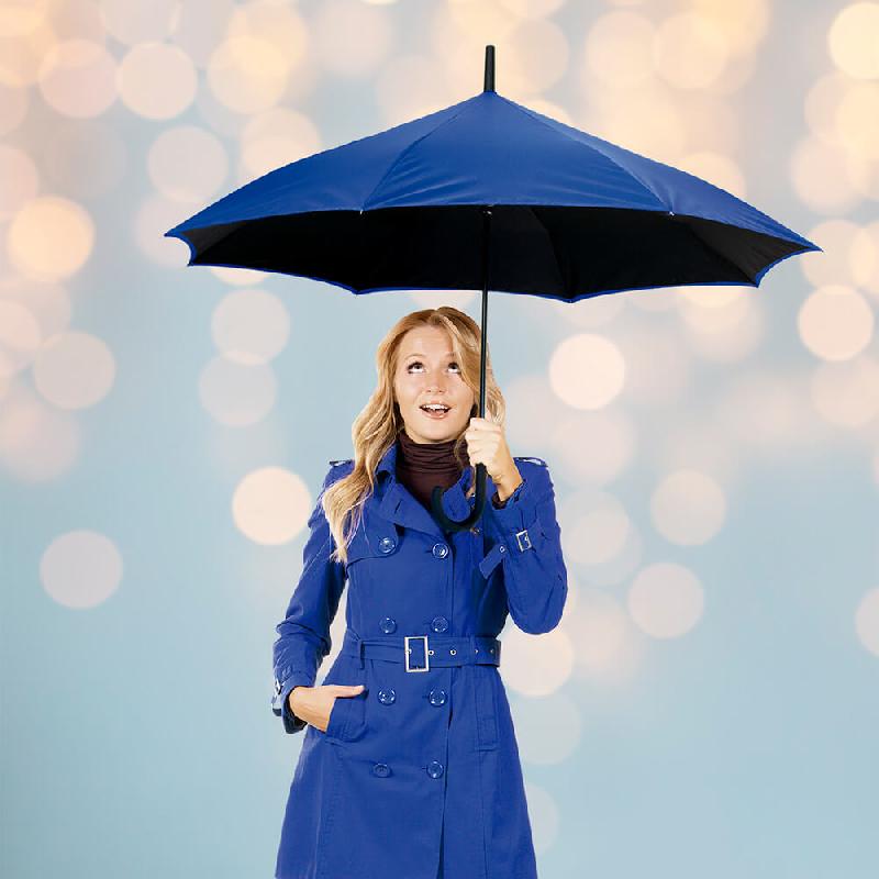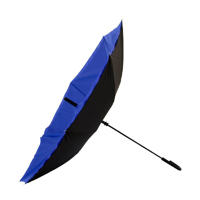 Paraguas de doble cara con sistema de cerrado invertido. Medidas: 80 x 61 cm Material: Pongee Empaque: Bolsa de plástico.