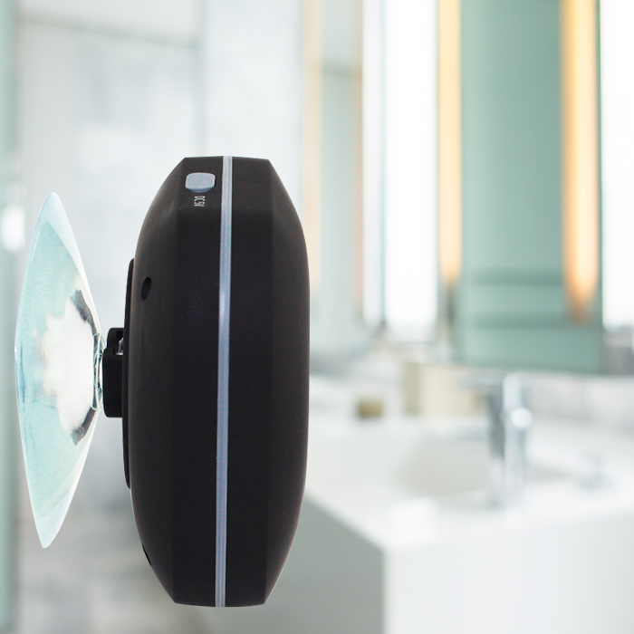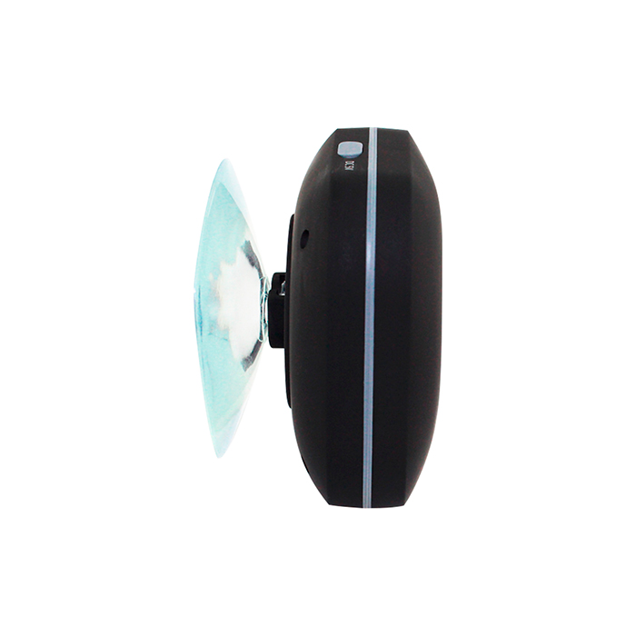 Bocina Normandía. - Bocina con conexión de sonido sin cables, fabricada en plástico con acabado en rubber, función de manos libres, resistente al agua, cuenta con ventosa de plástico. Incluye cable para recargar.