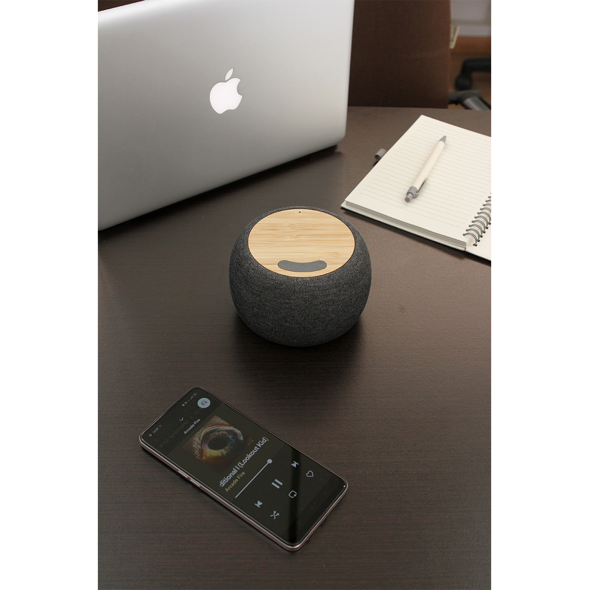 Bocina Shamal. - Bocina con conexión de sonido sin cables, forrada en tela la cual proporciona una protección adicional contra golpes y arañazos, la parte superior de la bocina está hecha de bambú que es conocido por su durabilidad y resistencia, una de las características destacadas de la bocina Shamal es su capacidad de carga inalámbrica para dispositivos electrónicos, la bocina carga utilizando el cable USB el cual ya esta incluido. Incluye caja de cartón individual.