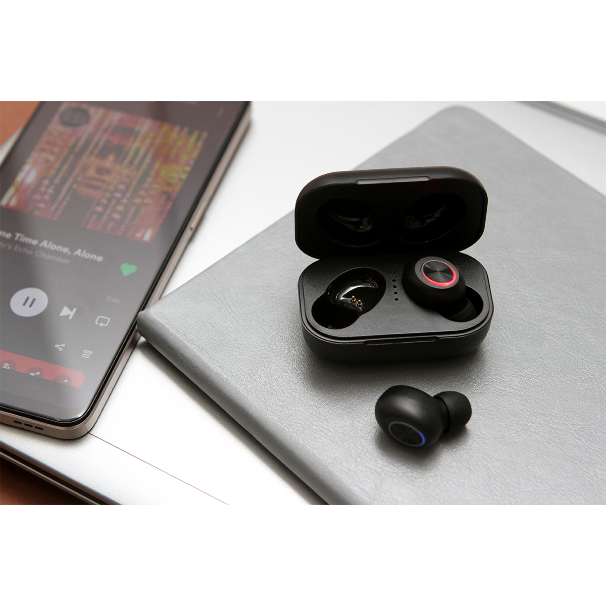 Audífonos Riep. - Audífonos con conexión de sonido sin cables, fabricados en plástico ABS acabado mate, con estuche de carga rectangular y cable de carga USB, ofrecen comodidad, calidad de sonido y conveniencia en un paquete compacto.