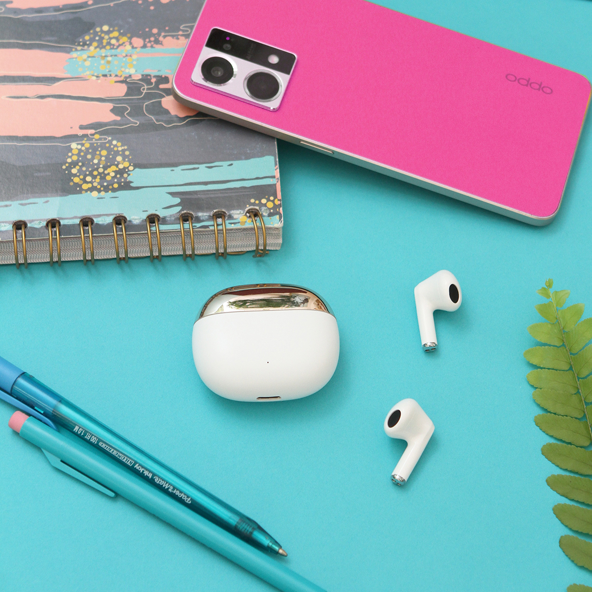 Audífonos Velletri. - Audífonos con conexión de sonido sin cables bi-tono, en la parte superior con acabado brilloso, y parte inferior con acabado mate, con estuche de carga ovalado, los audífonos tienen un ligero detalle en color plateado en la parte inferior.  Incluye cable de carga USB y caja de cartón individual.