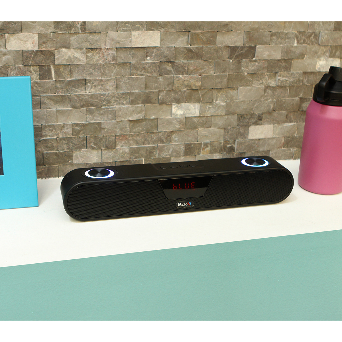 Bocina Bardello. - Bocina con conexión de sonido sin cables, radio FM, entrada para tarjeta TF, USB y auxiliar. Incluye cable de carga tipo-C. En la parte superior cuenta con 4 botones para funciones y 2 luces led. En la parte frontal tiene una pequeña pantalla. Incluye caja de cartón individual.