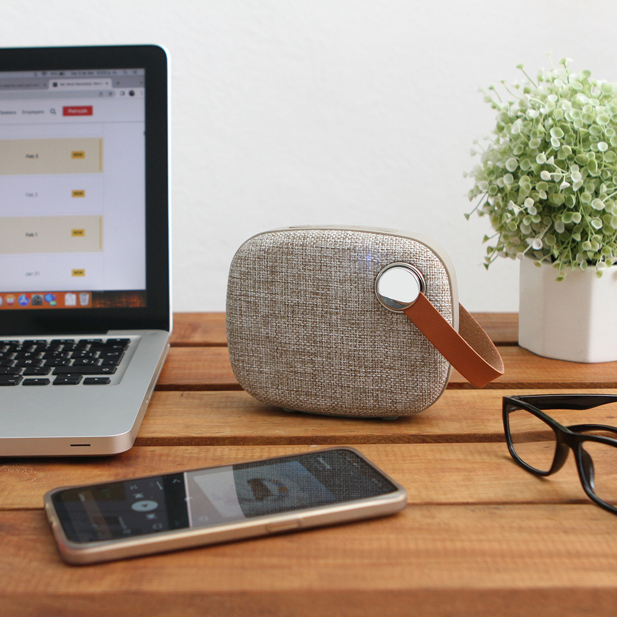 Bocina Schia. - Bocina con conexión de sonido sin cables, radio FM, cuenta con ranura para tarjeta Micro SD, ranura para puerto USB, entrada auxiliar 3.5mm. Acabado plástico y cubierta de tela con asa tipo piel para fácil transporte. Su diseño compacto es ideal para llevar  la música contigo a cualquier parte. Incluye cable de carga USB y caja de cartón individual.