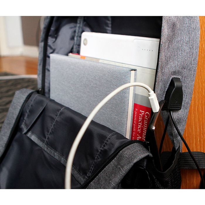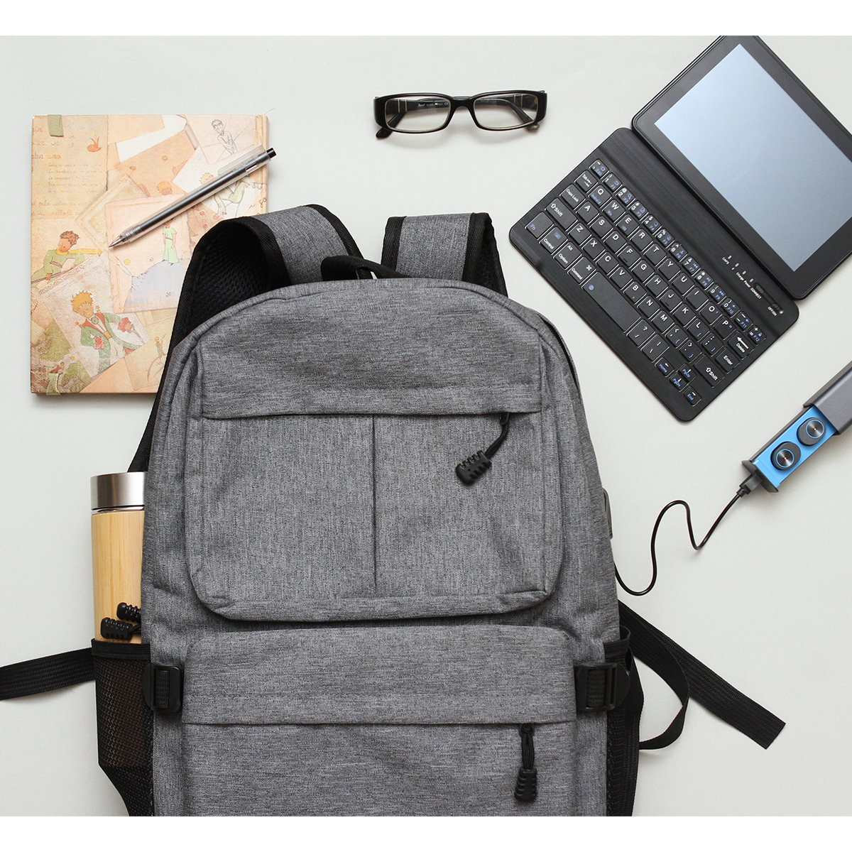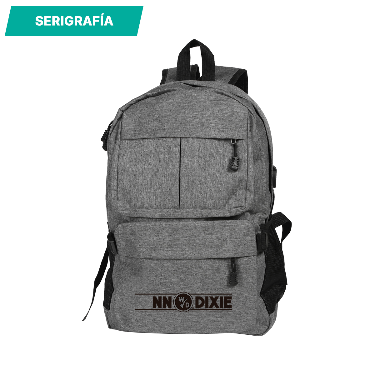Mochila Arua. - Mochila porta laptop con salida para puerto de carga USB, cuenta con bolsillos frontales con cierre y dos bolsillos laterales donde puedes guardar tus objetos más pequeños. Las correas de hombro son ajustables lo cual te brinda la posibilidad de adaptarla a tu comodidad, y cuenta con un asa superior resistente.