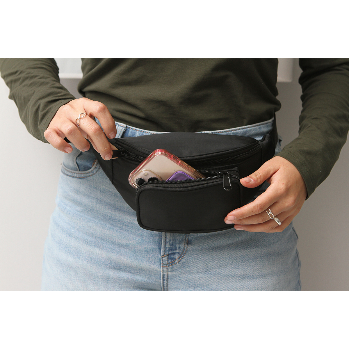 Cangurera Gonnesa. - Bolsa tipo cangurera fabricada en nailon, con tres compartimentos con cierre, ideales para guardar artículos pequeños como audífonos, celular, monedas, lentes, etc.