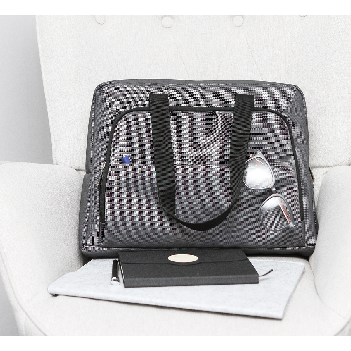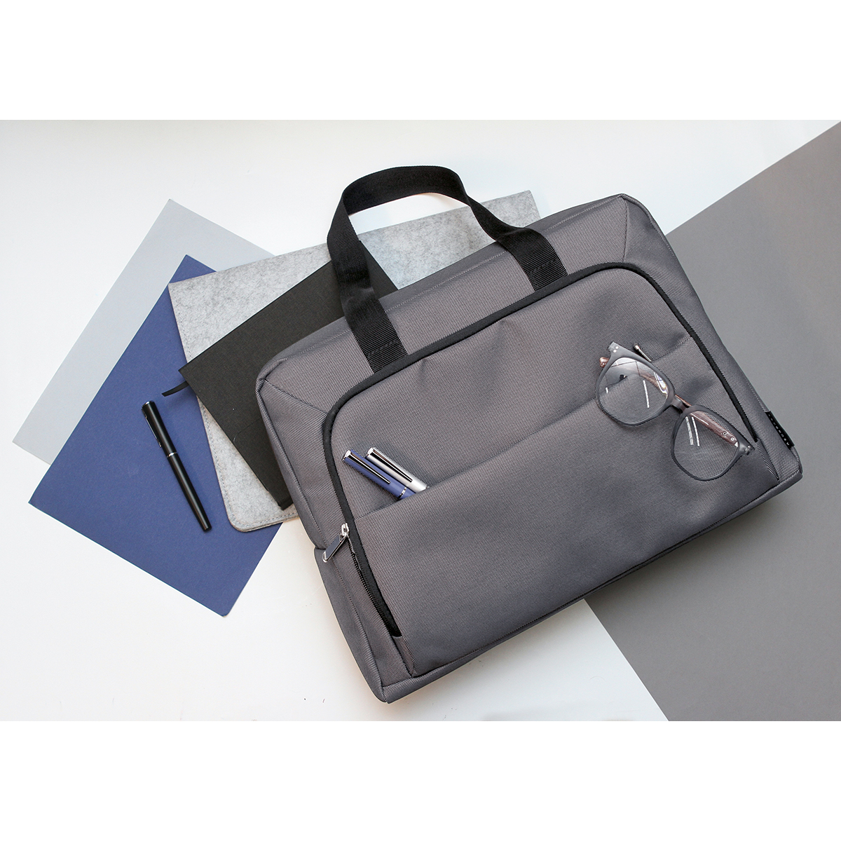Portafolio Caála. - Portafolio para laptop fabricada en poliéster, con relleno de espuma de PE. Incluye compartimento principal, secundario, además de bolsillo para documentos y dos asas.