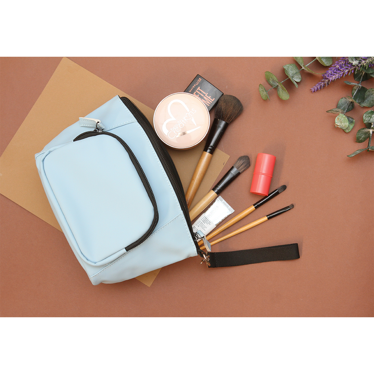 Cosmetiquera / Estuchera Lérida. - Cosmetiquera / estuchera fabricada en curpiel acabado mate y forro de poliéster. Cuenta con un compartimento principal con cremallera y con un compartimento frontal más pequeño con cremallera igualmente. Cuenta con una pequeña correa en uno de los cierres para una mejor manipulación.