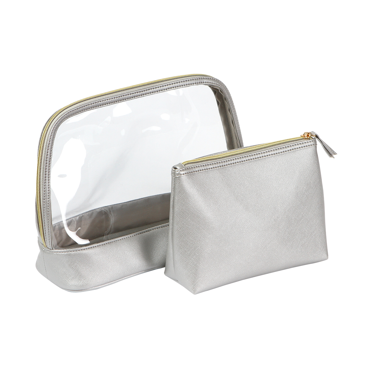 Cosmetiquera Ijevan. - Organiza tus esenciales de belleza y cuidado personal con este práctico juego de dos cosmetiqueras, ideal para viajes o uso diario. Incluye una cosmetiquera grande fabricada en plástico PVC transparente, perfecta para visualizar y acceder rápidamente a su contenido, con cierre seguro y diseño resistente. La segunda es una cosmetiquera pequeña fabricada en curpiel, con un forro interno de poliéster que protege tus productos, y cierre superior para mantener todo en orden. Su tamaño compacto la hace ideal para llevar en la bolsa o como complemento con la cosmetiquera grande. Llévalas juntas o por separado, y mantén todo lo que necesitas siempre a la mano con estilo y practicidad. Compactas, resistentes y ligeras.
