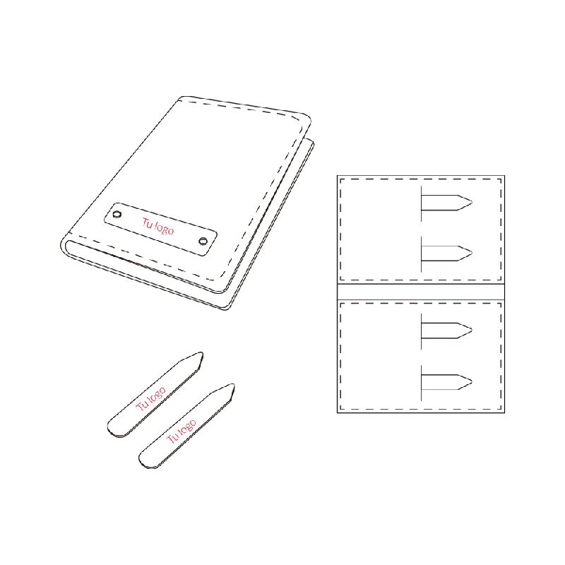 Set de postes para camisas en 2 tamaños, con estuche de piel que cuenta con placa para personalizado y bolsa de gamuza como empaque