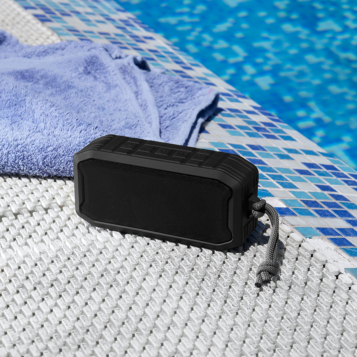 BOCINA DIVVO - Bocina IPX7 a prueba de agua, lo que permite sumergirla hasta 1 metro por un máximo de 30 minutos. Bocina con tecnología bluetooth 5.3. Potencia 5 W. Batería recargable con capacidad de 1,200 mAh que otorga un tiempo de reproducción de 3 a 4 horas. Alcance de conexión de 10 metros. Además, agrega controles integrados de llamada, función FM, puerto de conexión USB, micro USB, conexión para cable auxiliar 3.5 y ranura para tarjeta TF. Incluye cable con conector micro USB y caja individual.