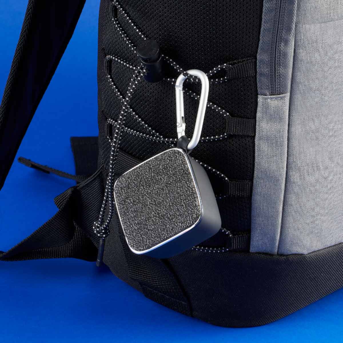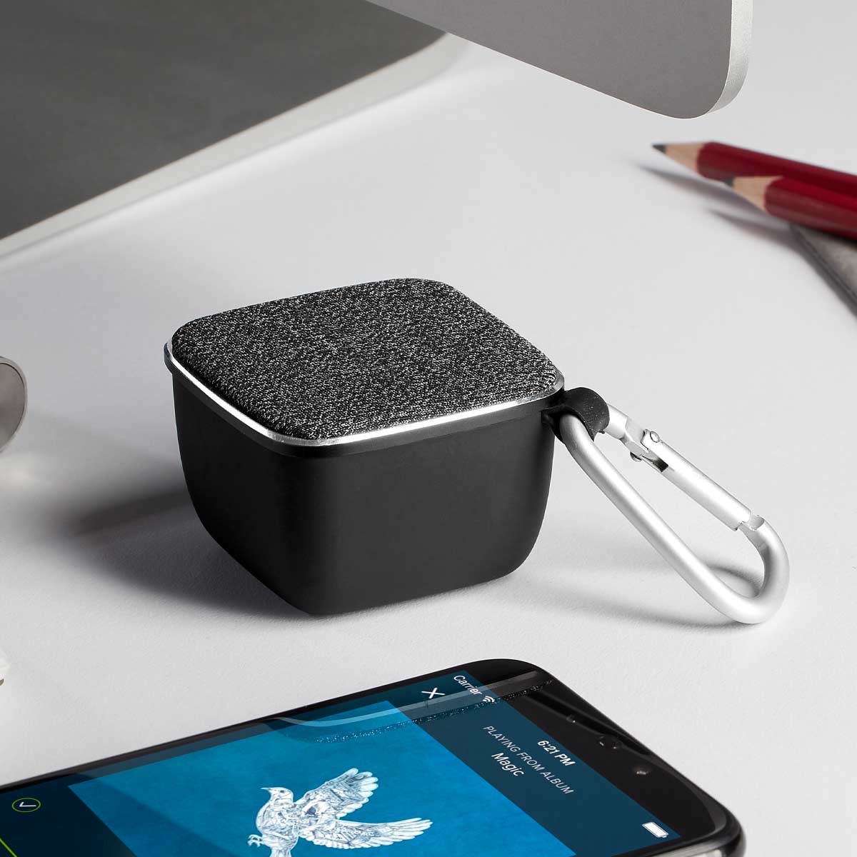 MINI BOCINA VOID - Bocina bluetooth con batería recargable. Reproducción de música de 3 hrs aproximadamente. Incluye cable cargador USB y gancho para transportarlo fácilmente.