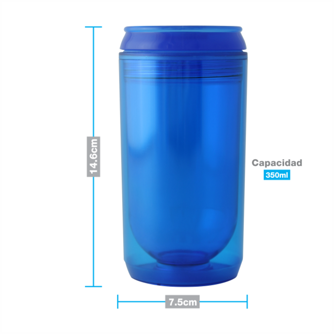 Cilindro Soda Cilindro en forma de lata, 350 ml con doble capa de policarbonato. Tapa con cierre de rosca. Boquilla de seguridad. Lavar antes de usar.