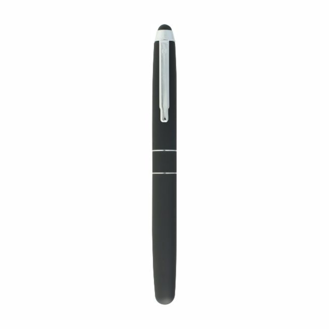 Dakar Touch Bolígrafo metálico con tapón que cierra a presión. Detalles color cromo. Mismo diseño que el bolígrafo Dakar, pero con touch en la punta del tapón. Escritura de alto desempeño debido a su repuesto japonés tipo roller (a elegir entre tinta negra o azul). Incluye estuche individua