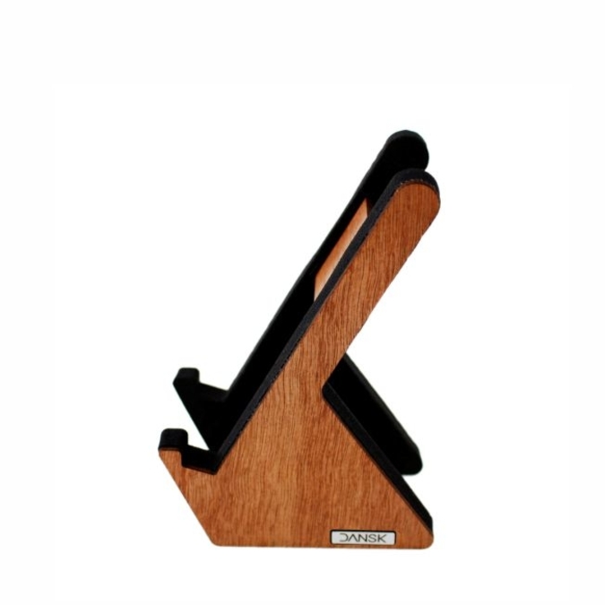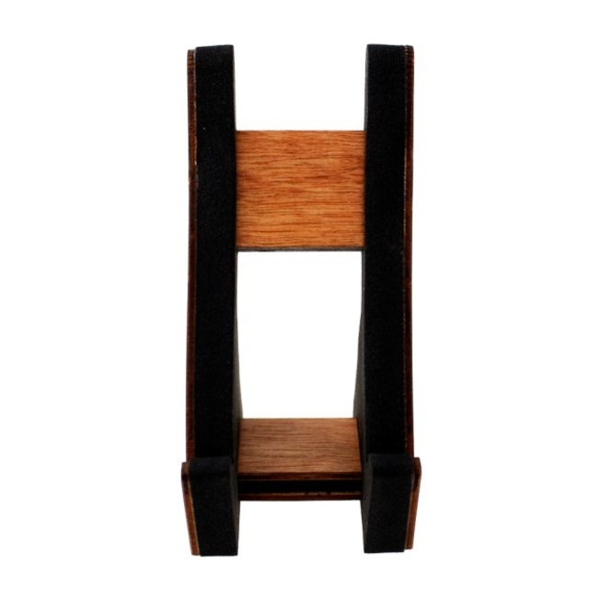 Porta Celular "Y" Soporte de escritorio para celular. Fabricado en espuma eva con recubrimiento de mdf y chapa de caoba. Un producto práctico y funcional que agregará un toque decorativo a tu espacio. Para uso vertical u horizontal. Hecho en México.