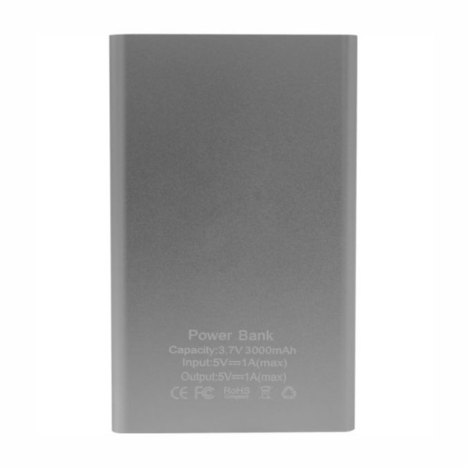 Lumina 3 powerbank Batería de Aluminio con diseño plano. Capacidad: 3.7V 3000mAh. Permite realizar cargas de alta velocidad cuando no tienes acceso a una corriente eléctrica. Cuenta con protección contra desgaste prematuro, sobrecalentamiento, corto circuito y sobrecarga. Leds indicadores de carga. Incluye cable conector para carga.
