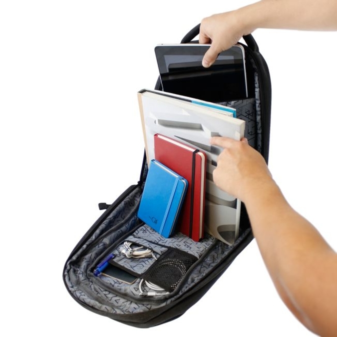 Mochila Takayama Atomik Mochila marca TAKAYAMA, fabricada mayormente en tela, con algunos detalles en curpiel texturizado. Combinación de tonalidades obscuras (negro / gris) y materiales repelentes al agua que la convierten en una opción duradera, funcional y muy práctica debido a su tamaño y ligereza. Compartimento acolchado para Lap Top de 15.6“. Apertura 180° con doble tira cierre. Solapas para ocultar cierres exteriores. Pequeña bolsa frontal de fácil acceso. Cuenta con un par de compartimentos al interior para organizar tarjetas, cables o artículos pequeños. Peso: 0.6 Kg. Capacidad: 16.3 Litros.