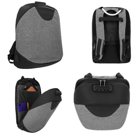 Mochila GIZMO. Mochila anti-robo con diseño orgánico. Protege tus pertenencias al abrirse por la parte posterior. Moderna y elegante.