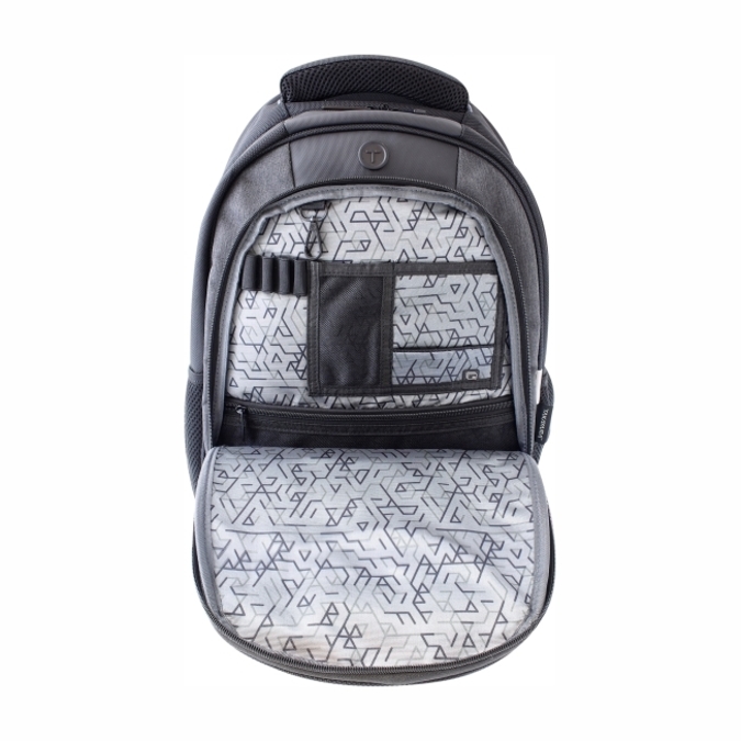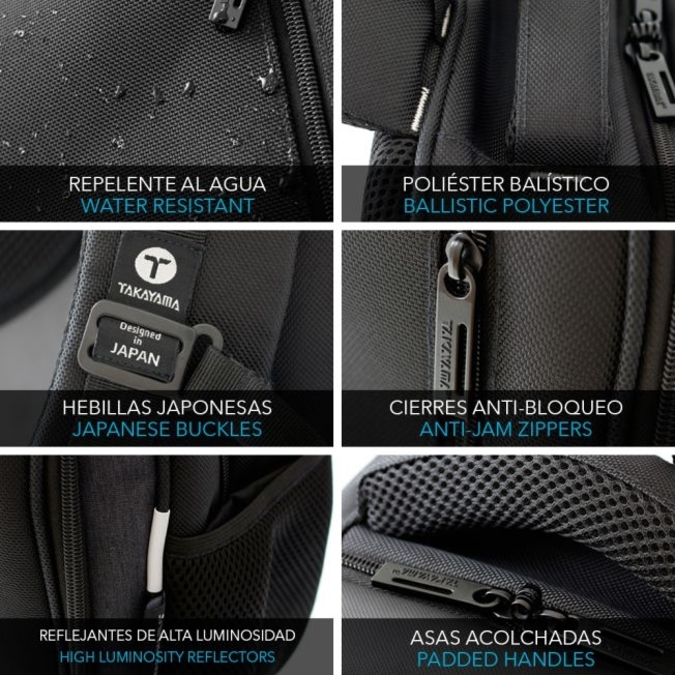 Mochila Takayama Taktik Mochila marca TAKAYAMA, fabricada en poliéster de alta resistencia. Detalles en tela y curpiel texturizado. Materiales que repelen el agua. Bolsas laterales con malla. Gran espacio frontal con organizador de accesorios y bolsa de malla con cierre. Compartimento Principal con espacio para Lap Top. Forros interiores con novedoso diseño. Cuenta con reflejantes laterales de alta luminosidad. Asas de colgar acolchadas. Canal de ventilación en espalda. Peso: 0.9 Kg. Capacidad: 29 Litros.