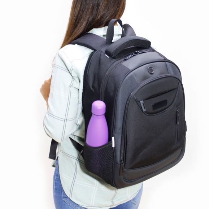 MATERIAL: POLIESTER MEDIDAS: Alto: 47 cm. Ancho: 34 cm. Fondo: 18.5 cm. Peso: 0.895 kg. IMPRESION: Laser MED. EMPAQUE: Largo de la caja: 55 cm. Ancho de la caja: 50 cm. Alto de la caja: 38 cm. PESO EMPAQUE: 12.5 kg. PIEZAS EMPAQUE: 10