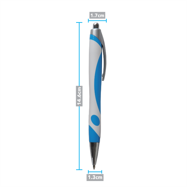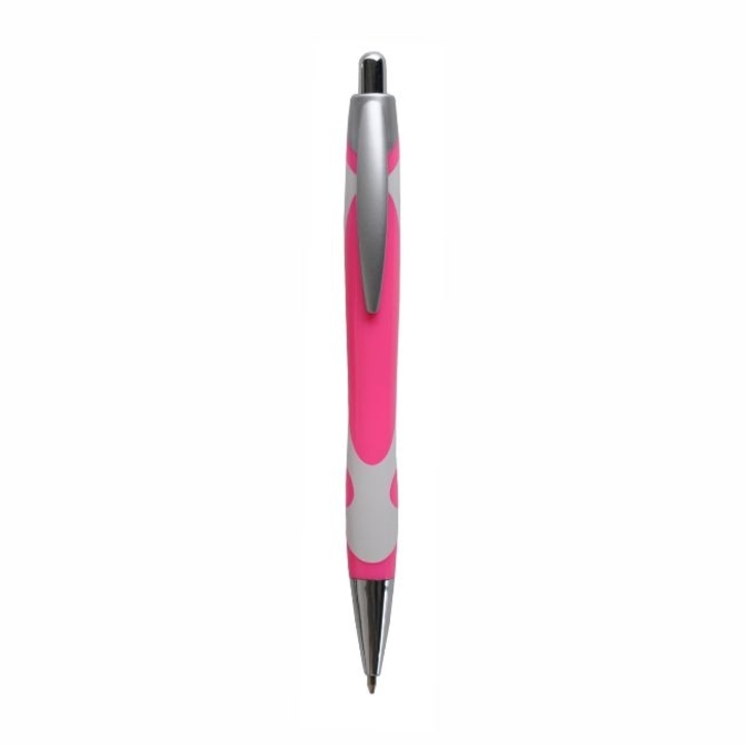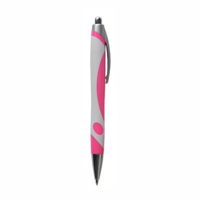 Splash Divertido Bolígrafo de plástico con cuerpo blanco sólido, combinado con detalles de color. Mecanismo retráctil. Tinta Negra.